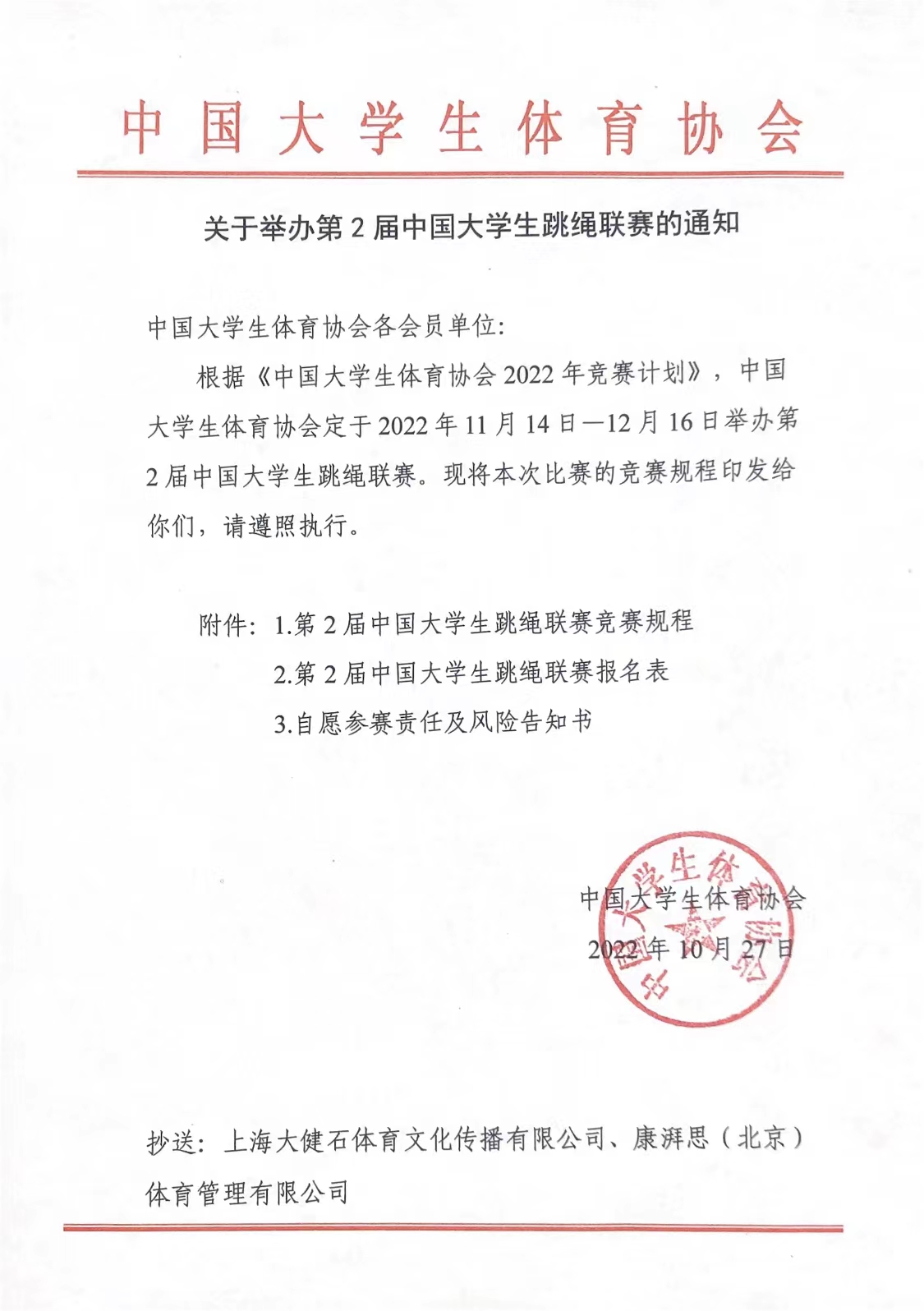 關于舉辦第2屆中國大學生跳繩聯賽的通知