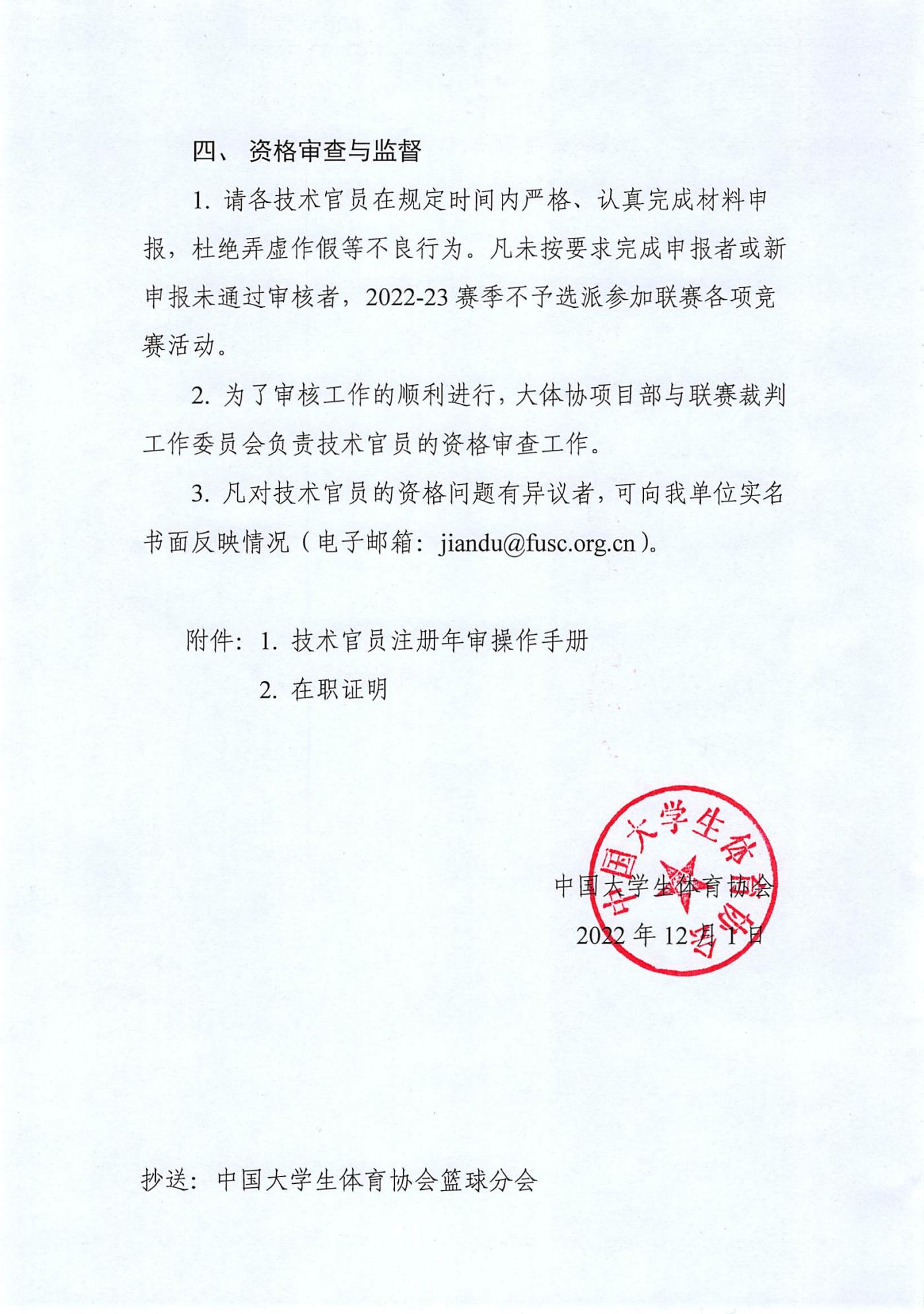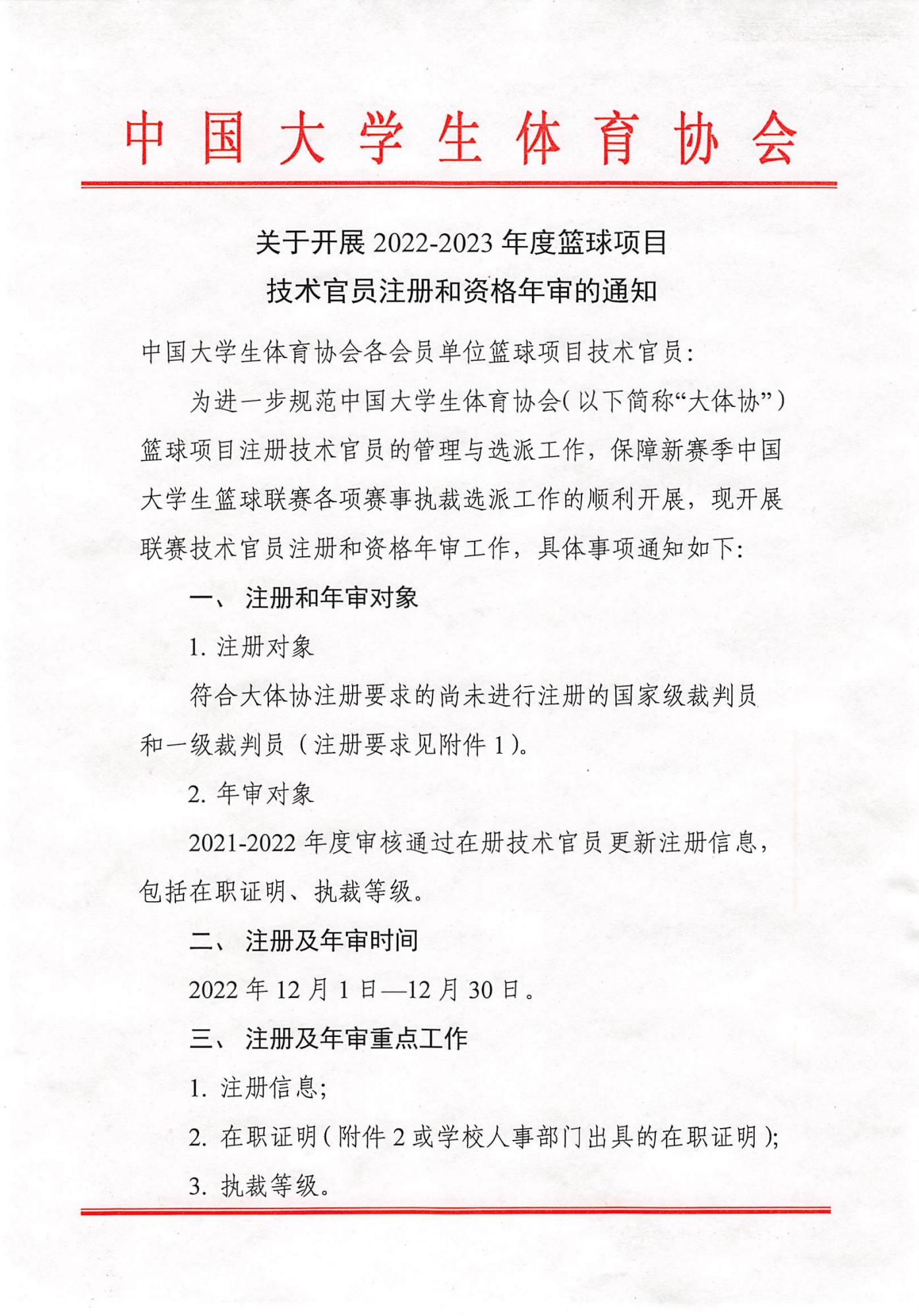 關(guān)于開展2022-2023年度籃球項(xiàng)目技術(shù)官員注冊(cè)和資格年審的通知