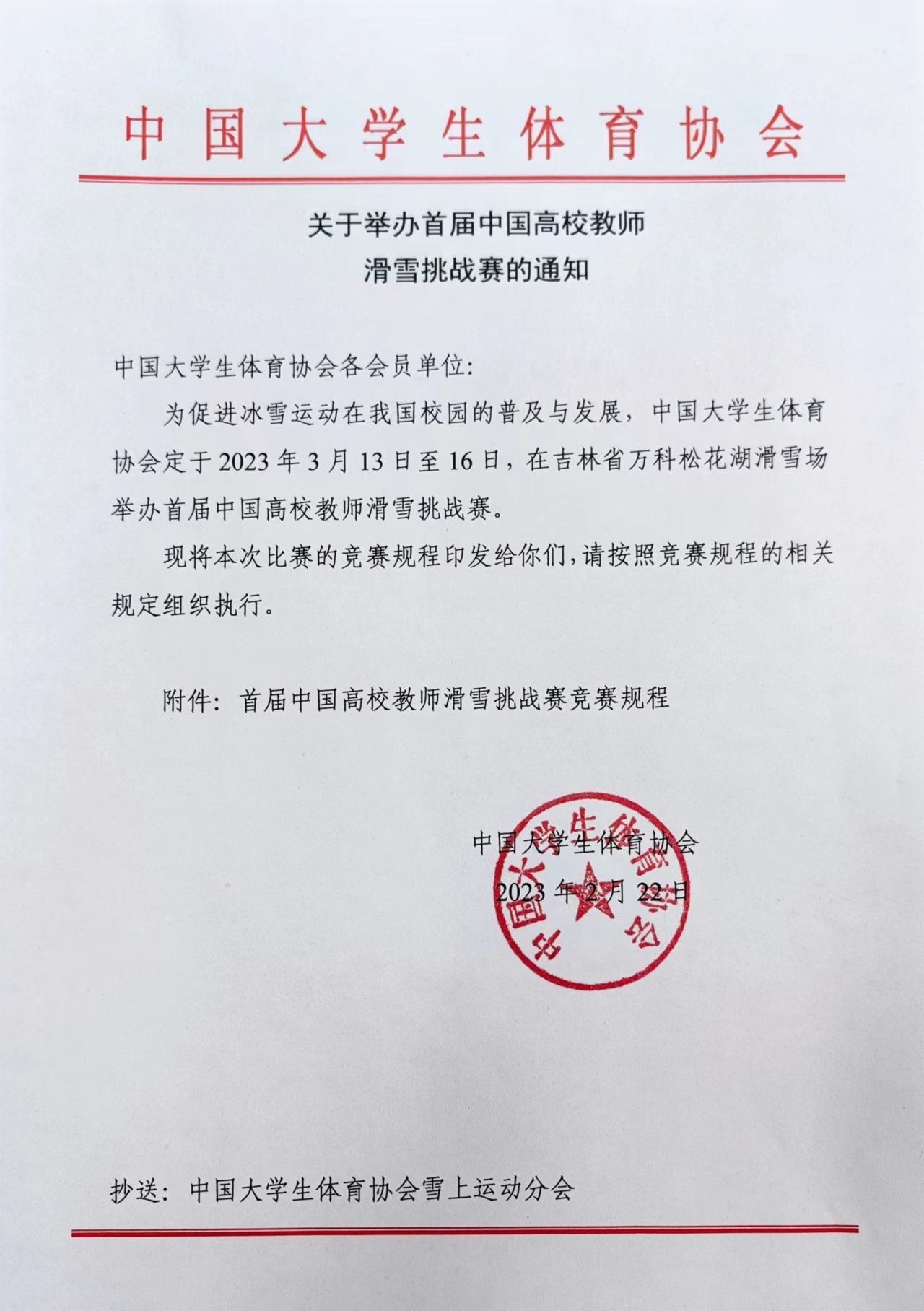 關(guān)于舉辦首屆中國(guó)高校教師滑雪挑戰(zhàn)賽的通知