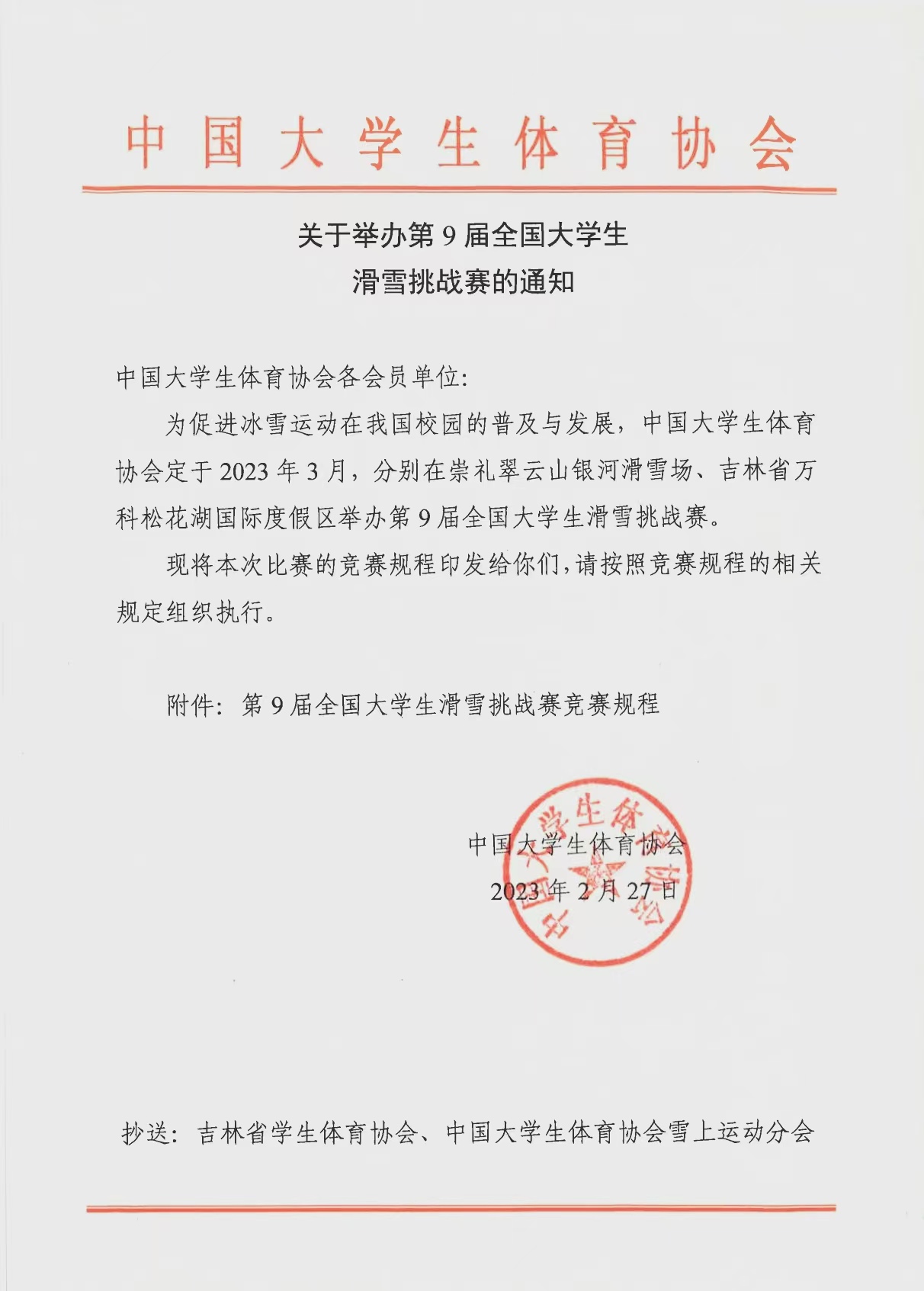 關(guān)于舉辦第9屆全國大學(xué)生滑雪挑戰(zhàn)賽的通知