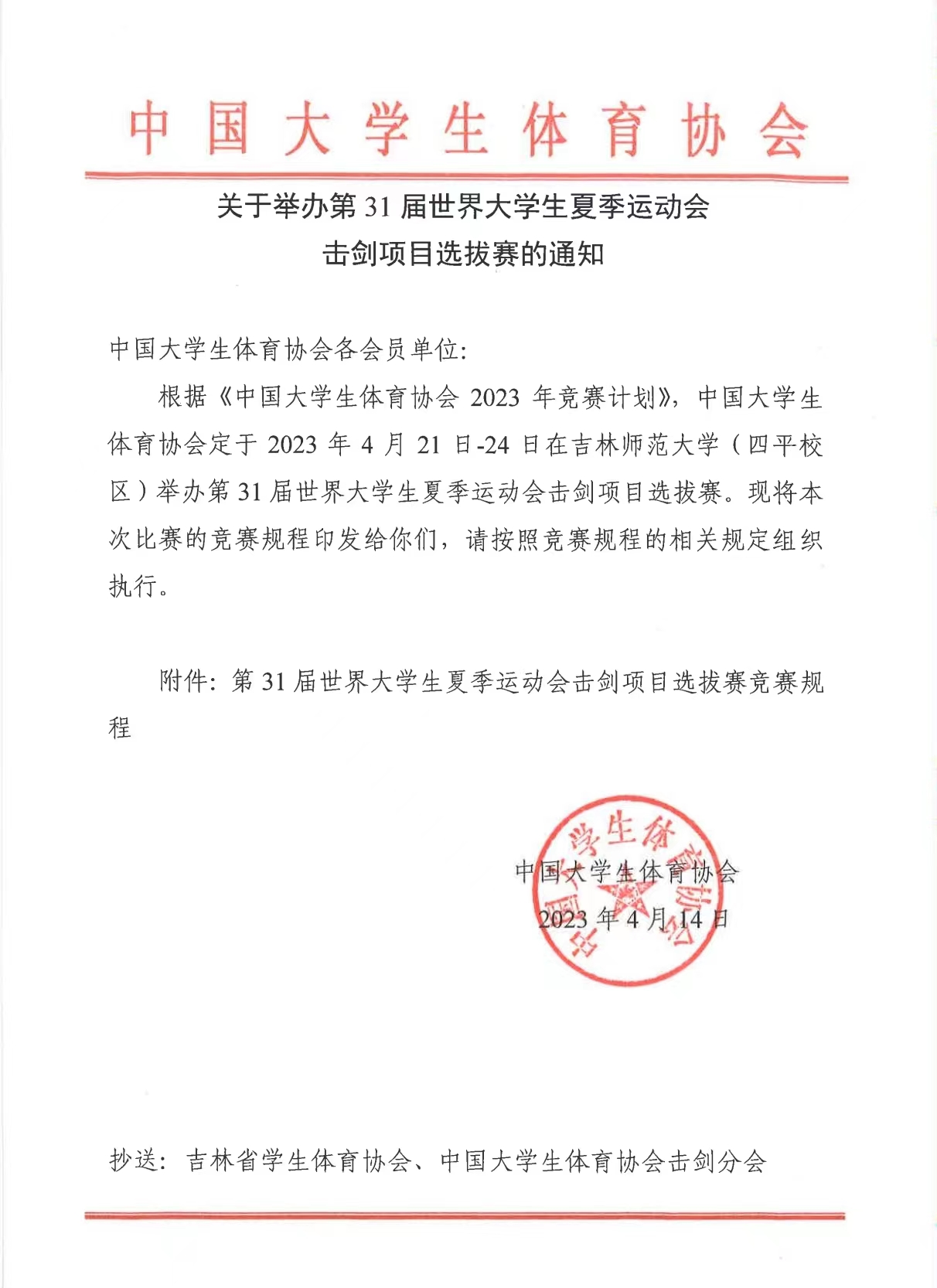 附件:第31屆世界大學生夏季運動會擊劍項目選拔賽競賽規程