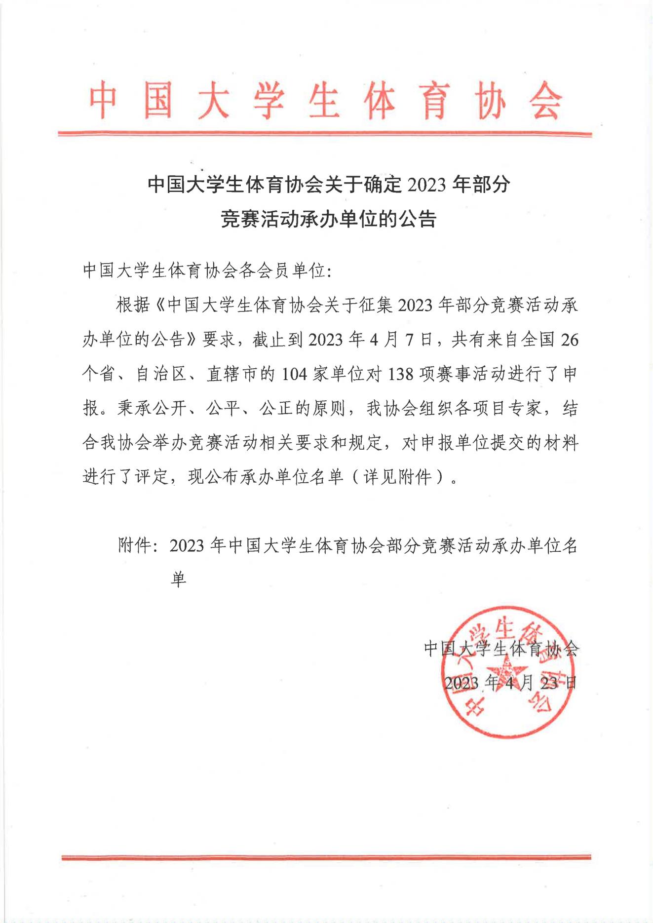 中國大學生體育協會關于確定2023年部分競賽活動承辦單位的公告