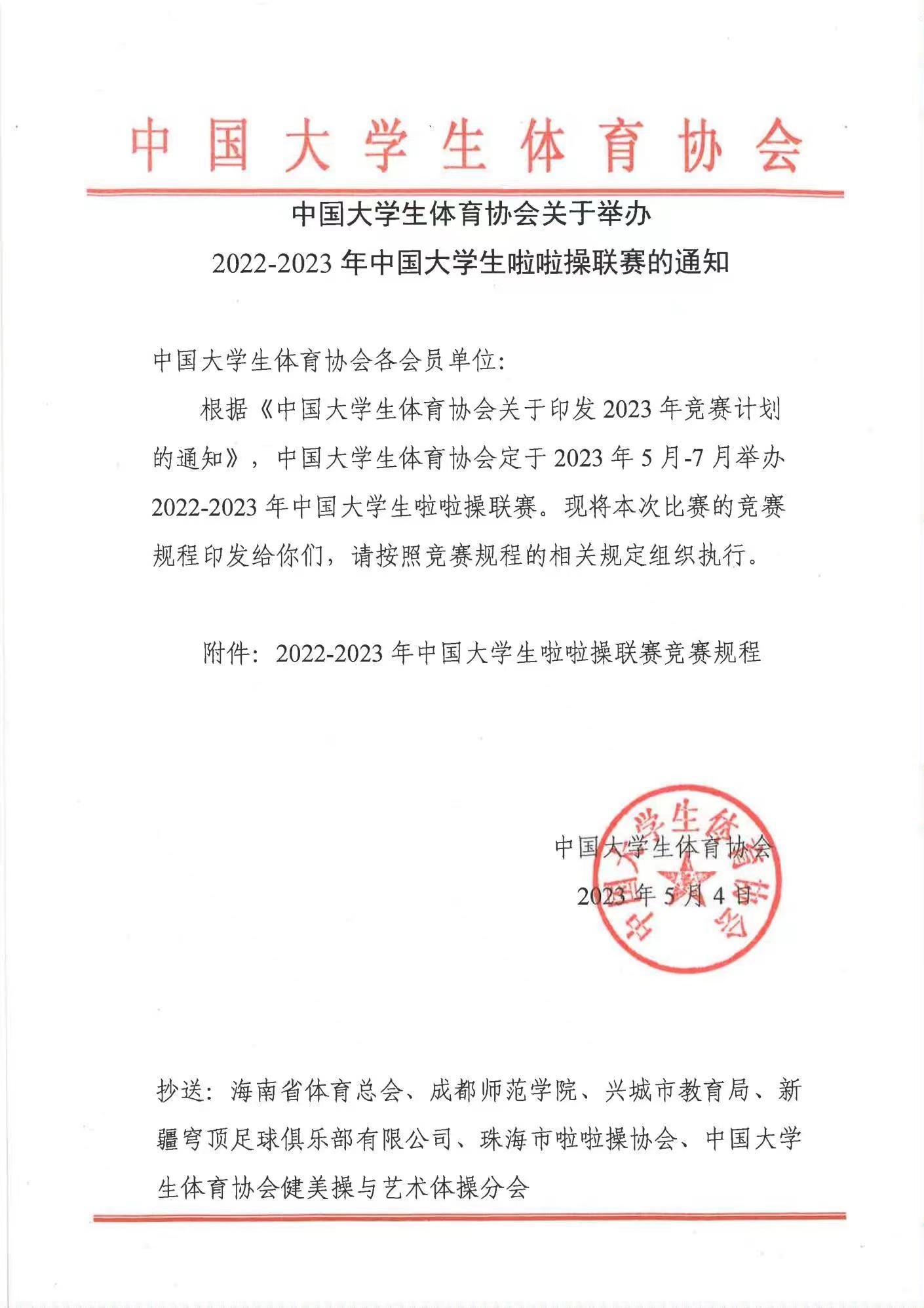 中國大學生體育協會關于舉辦2022-2023年中國大學生啦啦操聯賽的通知