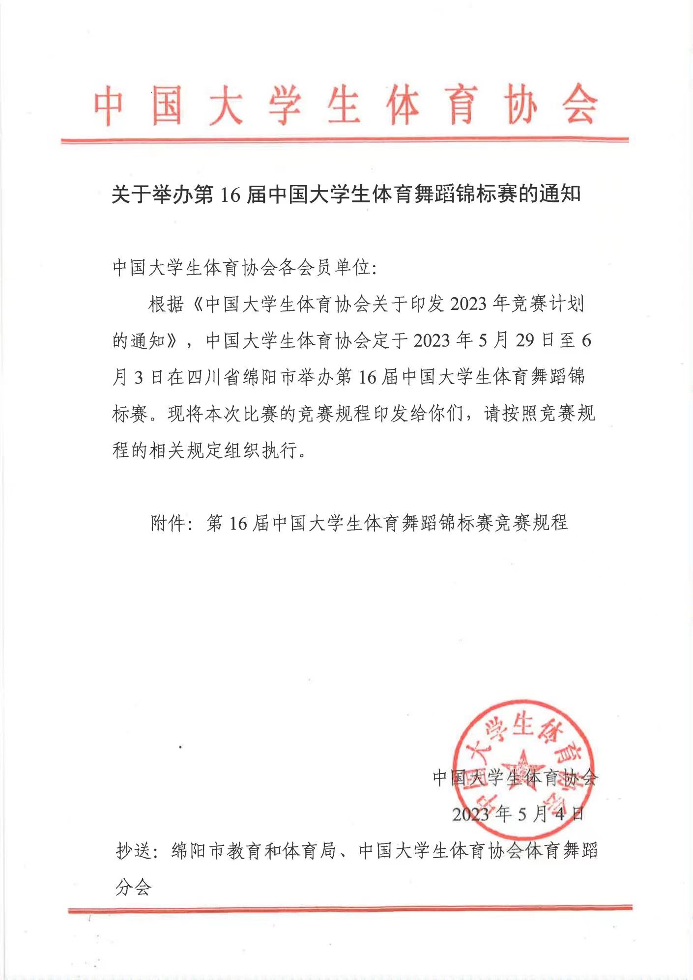 關(guān)于舉辦第16屆中國(guó)大學(xué)生體育舞蹈錦標(biāo)賽的通知