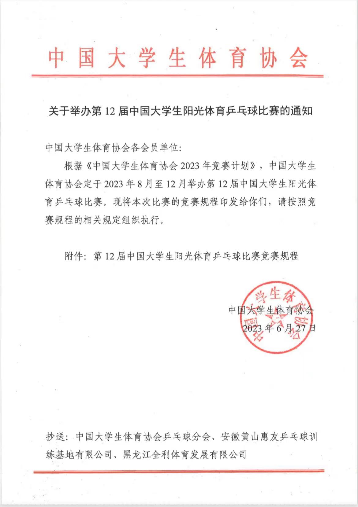 關(guān)于舉辦第12屆中國大學(xué)生陽光體育乒乓球比賽的通知