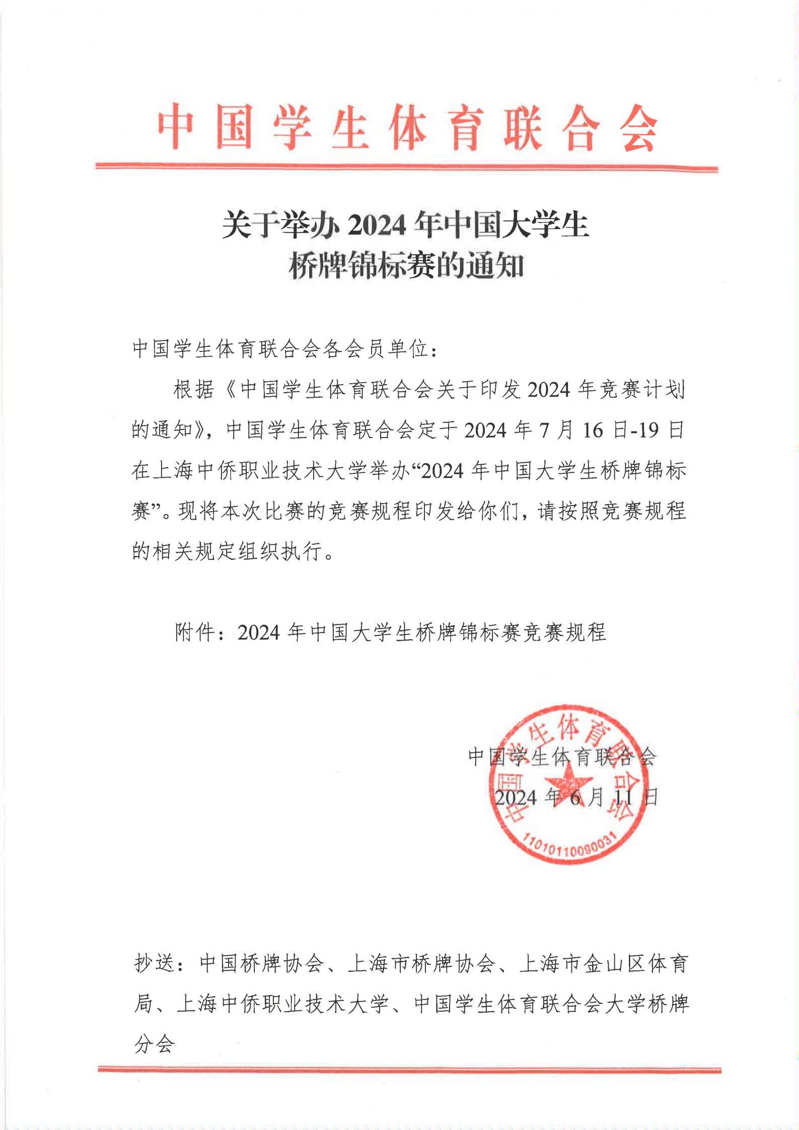 關(guān)于舉辦2024年中國(guó)大學(xué)生橋牌錦標(biāo)賽的通知